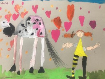 Wir malen und gestalten uns die Welt, wie sie uns gefällt! Wie Pippi, Tommy und Annika sind wir in der Welt von Pippis Villa Kunterbunt. Mit ihren lustigen Streichen und Abenteuern auf dem Schiff und im Taka-Tuka-Land. Pippi ist stark, lustig, mutig und sehr kreativ. Sie zeigt ihren etwas schüchternen Freund*innen, dass frischer und fröhlicher Mut viel Freude bereitet und gar nicht wirklich schlimm ist, sondern ganz herzerfrischend!