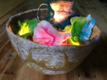 Zur Verfügung stehen unterschiedliche Schafwollarten in wunderschönen Farbnuancen, Vorfilz für interessante Muster und Kammzugwolle. Die Nachhaltigkeit von Produkten aus Schafwolle ohne chemische Zusatzstoffe liegt auf der Hand: Sie sind Wasser- und schmutzabweisend, formstabil und biologisch abbaubar. Bitte zwei alte Frottierhandtücher mitbringen.