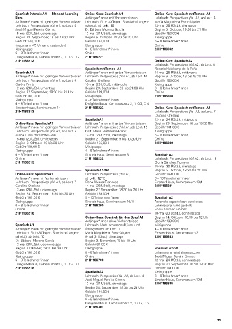 Gebühr 141,00 € 8 – 10 Teilnehmer*innen Spanisch A2