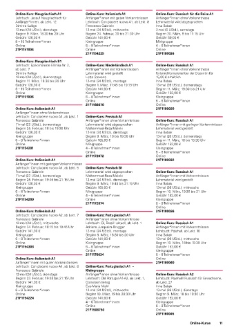 12-mal (24 UStd.), mittwochs Lehrbuch: Oi, Brasil! aktuell, ab Lekt. 1 Online-Kurs: Russisch A1