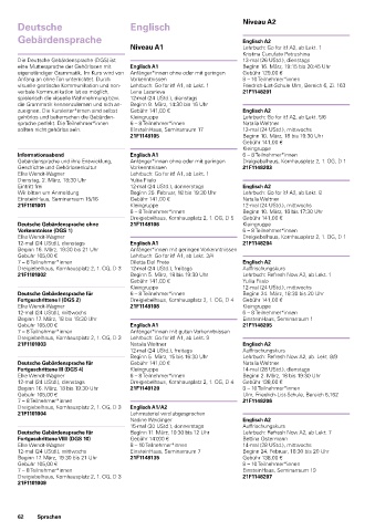 Die Deutsche Gebärdensprache (DGS) ist 13-mal (26 UStd.), dienstags