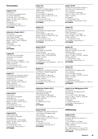 Conversation 14-mal (28 UStd.), dienstags 14-mal (28 UStd.), montags
