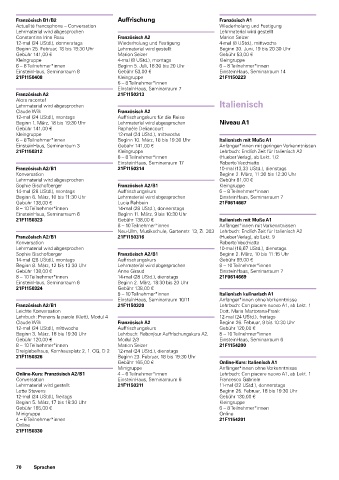 Online-Kurs: Französisch A2/B1 4 – 6 Teilnehmer*innen Lehrbuch: Con piacere nuovo A1, ab Lekt. 1
