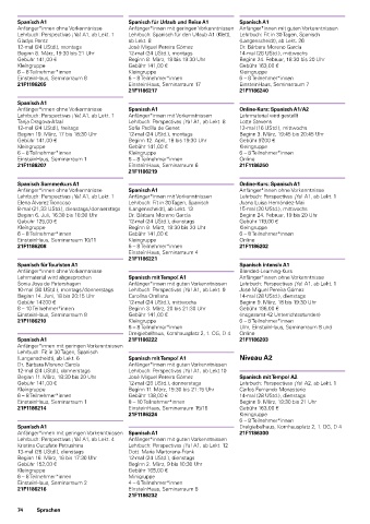 12-mal (24 UStd.), donnerstags Lehrbuch: Perspectivas ¡Ya! A1, ab Lekt.10