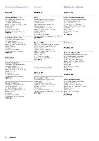 Serbisch / Kroatisch A1/A2 Latein A1 Online-Kurs: Niederländisch A1
