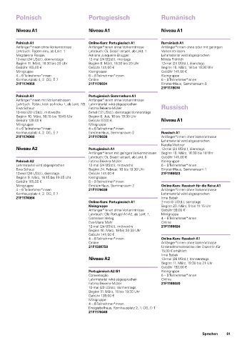 Polnisch A1 Online-Kurs: Portugiesisch A1 Rumänisch A1
