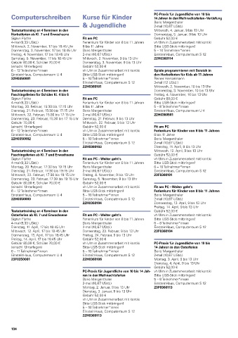 4-mal (9,33 UStd.) Ferienkurs für Kinder von 8 bis 11 Jahren Bitte USB-Stick mitbringen!