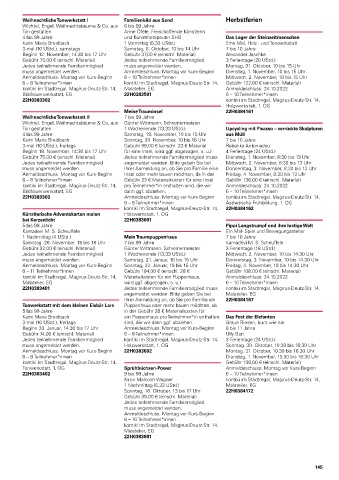 Gebühr 75,00 € (einschl. Material) Jedes teilnehmende Familienmitglied muss Dienstag, 1. November, 8:30 bis 13 Uhr
