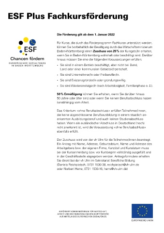 Für Kurse, die durch das Förderprogramm Fachkurse unterstützt werden,