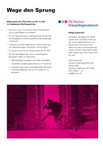 und Verteilung von Werbematerial für Veranstaltungen wieder eine FSJ Kultur Stelle an