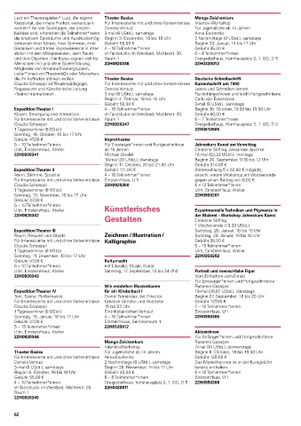 die kreativen Spielräume und Ausdrucksmög- Beginn 3. Dezember, 16 bis 18 Uhr 2 Nachmittage (8 UStd.), samstags