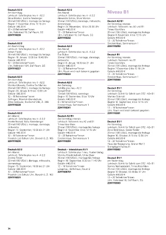 Gebühr 440,00 € Beginn 24. November, 18 bis 20:30 Uhr Lehrbuch: Netzwerk neu A2 und B1
