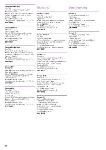 Beginn 26. September, 13:15 bis 17:30 Uhr Deutsch C1/1