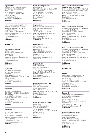 10-mal (20 UStd.), montags 6 – 8 Teilnehmer*innen Conversation and Grammar Review