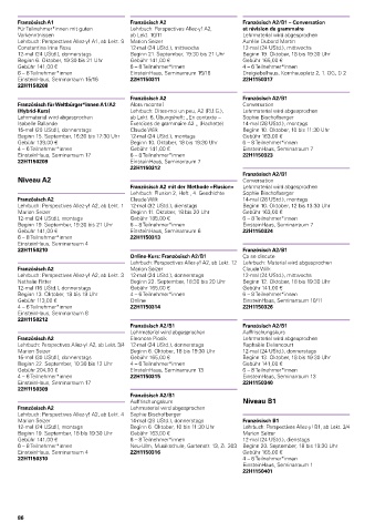 12-mal (24 UStd.), montags Beginn 6. Oktober, 10 bis 11:30 Uhr Lehrbuch: Perspectives Allez-y! B1, ab Lekt. 3/4