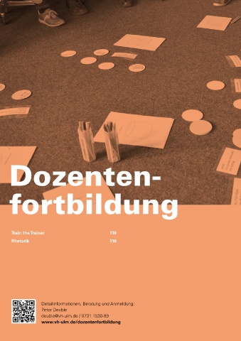 Dozenten- fortbildung Train the Trainer 110 Rhetorik 110 Detailinformationen, Beratung und Anmeldung: Peter Deuble deuble@vh-ulm.de / 0731 1530-89 www.vh-ulm.de/dozentenfortbildung