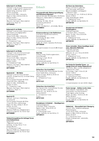10-mal (13,33 UStd.), mittwochs Dienstag, 5. April, 19 Uhr Erbach, KaffCafé, Auf der Wühre 13