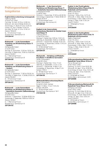 6-mal (22 UStd.), freitags Prüfungsvorbereitung Mathematik für