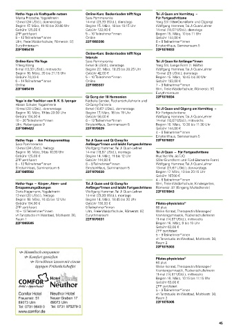 10-mal (20 UStd.), donnerstags 8-mal (10,67 UStd.), donnerstags Tai Ji Quan und Qigong am Vormittag –