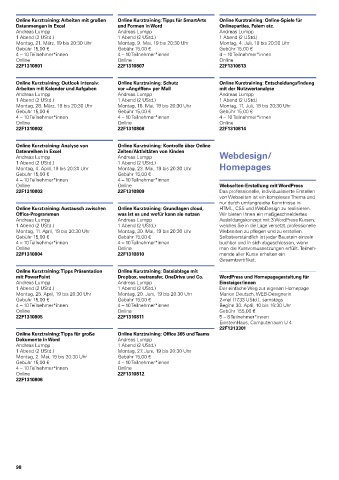 Montag, 25. April, 19 bis 20:30 Uhr Montag, 20. Juni, 19 bis 20:30 Uhr Marion Deutsch, WEB-Designerin