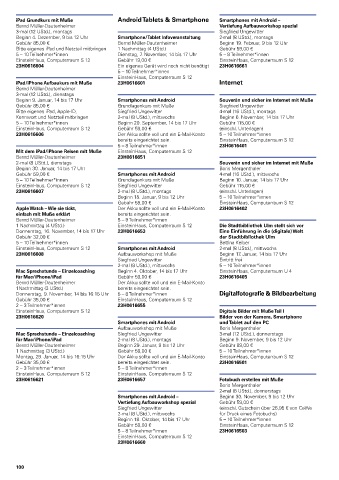Beginn 4. Dezember, 9 bis 12 Uhr Smartphone/Tablet Infoveranstaltung 2-mal (8 UStd.), montags
