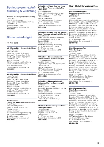 Sonntag, 22. Oktober, 9 bis 16 Uhr Fit fürs Büro – Büroorganisation mit Dienstag, 17. Oktober, 8:30 bis 11:45 Uhr