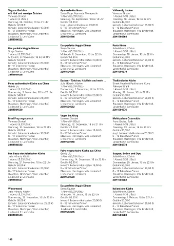 (einschl. Lebensmittelkosten 21,00 €) 6 – 12 Teilnehmer*innen (einschl. Lebensmittelkosten 20,00 €)
