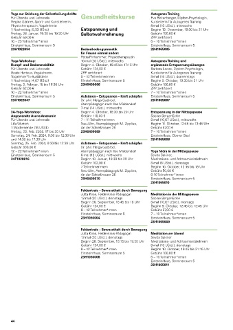 Yoga-Workshop: 10-mal (20 UStd.), mittwochs Autogenes Training und