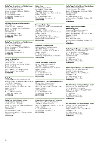 12-mal (20 UStd.), montags 12-mal (16 UStd.), dienstags Mit Hatha-Yoga den Tag ausklingen lassen