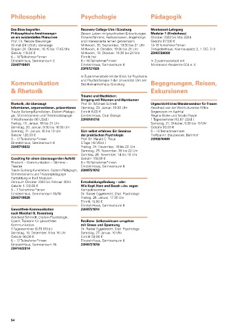 Kommunikation und Psychotherapie II der Universität Ulm am Begegnungen, Reisen,