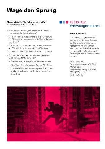 und Verteilung von Werbematerial für Veranstaltungen wieder eine FSJ Kultur Stelle an