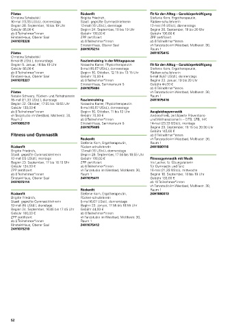 10-mal (13,33 UStd.), donnerstags Staatl. geprüfte Gymnastiklehrerin Rücken-schullehrerin