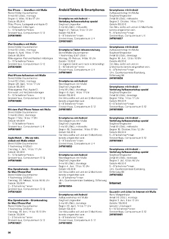 Beginn 4. März, 14 bis 17 Uhr Smartphones mit Android – 2-mal (8 UStd.), mittwochs