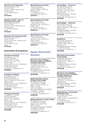 Beginn 4. Juni, 13 bis 16 Uhr MacBook-Aufbaukurs für Apple mit Muße Gebühr 39,00 €