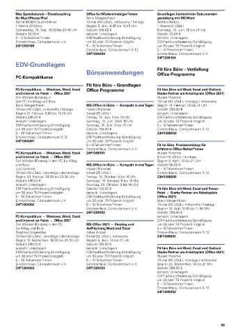 und Büro MS-Office im Büro – Kompakt in drei Tagen Gebühr 90,00 €