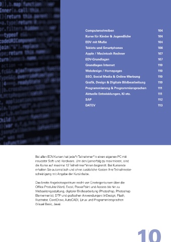 Das breite Angebotsspektrum reicht von Einsteigerkursen über die