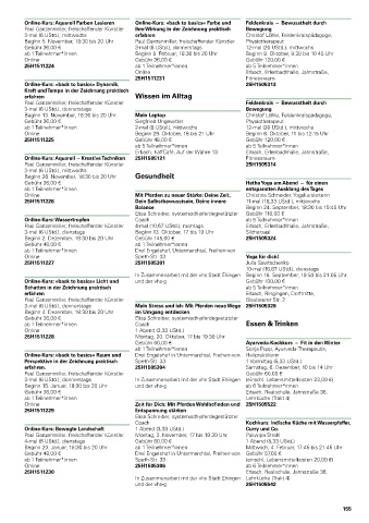 Online Beginn 29. Oktober, 18 bis 21 Uhr Beginn 8. Oktober, 11 bis 12:15 Uhr