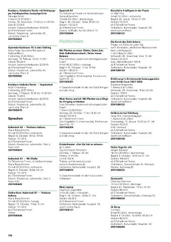 Freitag, 28. November, 17:45 bis 21:45 Uhr Beginn 16. Oktober, 18 bis 19:30 Uhr Gebühr 72,00 €