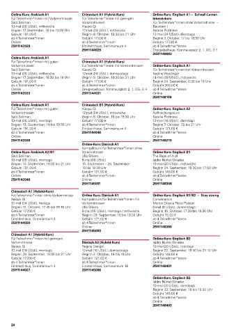 Gebühr 191,00 € 18 bis 19:30 Uhr Beginn 24. September, 16:20 bis 17:50 Uhr
