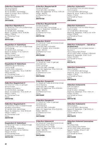 10-mal (20 UStd.), donnerstags Beginn 16. September, 18:15 bis 19:45 Uhr 12-mal (24 UStd.), donnerstags