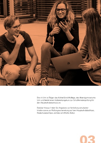 Die vh Ulm ist Träger des Aicher-Scholl-Kollegs, des Abendgymnasiums