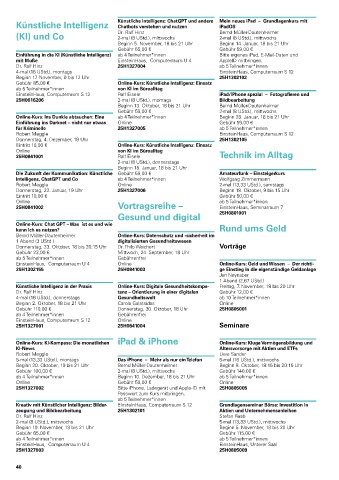 Künstliche Intelligenz in der Praxis Online-Kurs: Digitale Gesundheitskompe- Freitag, 7. November, 18 bis 20 Uhr