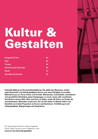 verschiedensten Menschen zusammen. Die vh Ulm bietet im Bereich Kultur und