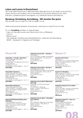 Deutsch B2/1 Intensivkurs Beginn 30. September, 18 bis 20:30 Uhr Deutsch C1/1 Abendkurs