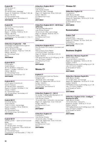 12-mal (24 UStd.), dienstags 10-mal (20 UStd.), montags Online-Kurs: Englisch C2