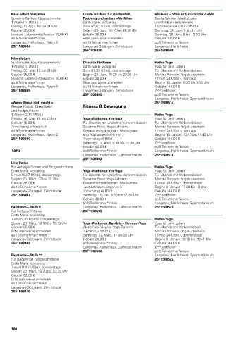 (einschl. Lebensmittelkosten 15,00 €) Gebühr 28,00 € 12-mal (24 UStd.), montags