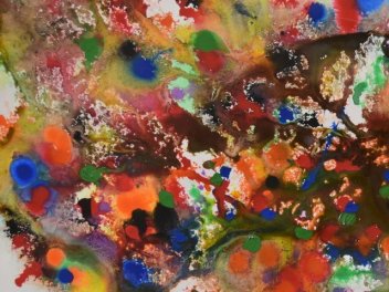 Im Atelier gibt es einen vollen Fundus an Farben, Werkzeugen und verschiedenen weiteren Materialien, um bei der Bildgestaltung so richtig nach Herzenslust aus dem Vollen schöpfen zu können (Man braucht selber nichts mitbringen). So entstehen intuitiv gemalte Bilder - wie im Farbrausch.