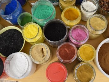 Im Atelier gibt es eine reichhaltige Auswahl an Pigmenten, Werkzeugen und verschiedenen weiteren Materialien, um bei der Bildgestaltung so richtig nach Herzenslust aus dem Vollen schöpfen zu können (Man braucht selber nichts mitbringen).